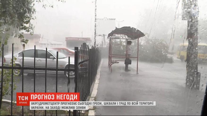 На западе, в центре и, в частности, в столице сегодня прогнозируют грозу с градом и порывистый ветер. Спасатели советуют закрыть окна, убрать с балконов предметы, которые могут выпасть. Если непогода застала на улице - стоит держаться подальше от рекламных щитов, деревьев и линий электропередач.