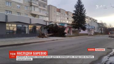 Сильный ветер во Львовской области повалил билборды, выкорчевал деревья и сорвал крыши