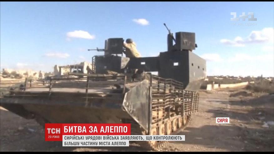 Армия отвоевала у повстанцев уже большую часть города. О полном его освобождении в Дамаске могут объявить уже в ближайшие часы. Подконтрольные действующему режиму телеканалы показывают радостных людей, утверждая, что они вышли на улицы Алеппо поздравить правительственных военных. В то же время в ООН заявляют, что сирийская армия убивала и пытала гражданских лиц, которые не поддерживают Асада.