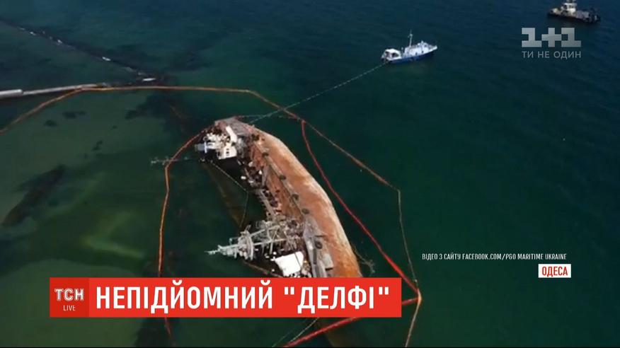 В Одессе начали спецоперацию по подъему танкера "Делфи", который 8 месяцев пролежал на мели у берега после того, как попал в кораблекрушение. Работы не отложили даже из-за новой масштабной утечки нефтепродуктов, которая произошла утром. Площадь пятна превысила 7000 квадратных метров. Утечка уже не первая и очередная авария только добавила понимание, что убрать танкер надо как можно быстрее. У судна уже несколько часов работают буксиры, которые должны расшатать его и снять с мели. Для судовладельца сегодняшняя попытка - последняя. Если она закончится неудачей, ситуацию с "Делфи" могут признать техногенной катастрофой.