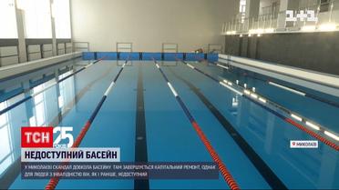 В Николаеве скандал вокруг бассейна. Он единственный коммунальный в городе и завершается его капитальный ремонт. Но оказалось, для людей с инвалидностью по-прежнему от недоступен: для них нет приспособленных уборных и душевых, не оборудовали спуск на воду, а все двери узкие - кресла колесные там просто не проходят. Почему – в сюжете.