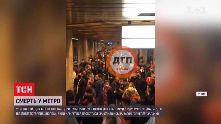 Смерть в метро. Столичная полиция расследует гибель мужчины вечером накануне между станциями "Выдубичи" и "Славутич". По предварительной информации, он пытался прокатиться, зацепившись за вагон поезда. Люди, которые пытаются так передвигаться, себя называют "зацеперами". Экстрим закончился трагически - 29-летнему гостю столицы из Ужгорода оторвало голову. Движение метро на полтора часа закрыли. А сейчас стало известно - смерть мужчины расследуют по традиционной в таких случаях статье "умышленное убийство", но с дополнительной квалификацией "самоубийство".