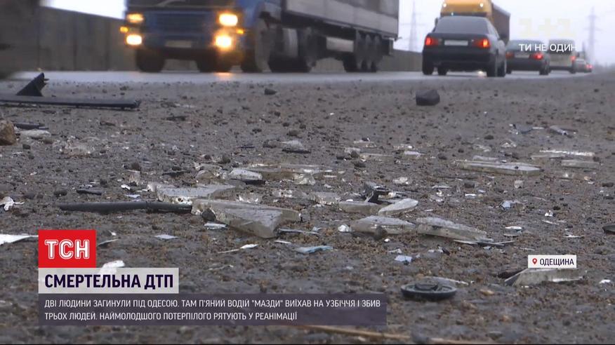 Два человека погибли, один - в реанимации. Под Одессой пьяный водитель "Мазды" выехал на обочину и сбил трех человек. ДТП произошло на объездной дороге возле Хаджибейского лимана. Ночью здесь нет освещения вообще. Четверо мужчин остановились на обочине починить свой автомобиль. "Мазда" на полной скорости вылетела с проезжей части, зацепила трех - 19-летнего парня и мужчин 31 и 36 лет. Один из них скончался от травм на месте, двух госпитализировали, но одного так и не спасли. Он умер в больнице утром.