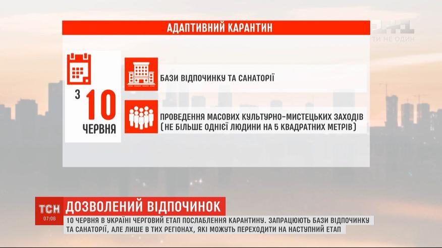 Очередной этап смягчения карантина. С 10 июня должны заработать базы отдыха и санатории. А еще позволят проводить массовые культурно-художественные мероприятия, но при условии - не более одного человека на 5 квадратных метров. Все это будет возможно только в тех регионах, которые могут переходить на следующий этап послаблений.
