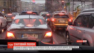 Снегопад вызвал огромные пробки в столице