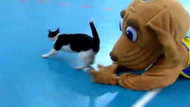 Во время баскетбольного матча между израильскими командами на площадку выбежал кот. Когда кота заметил исполнитель роли талисмана - пес Донни - он бросился за незваным гостем. Однако, коту удалось бежать.