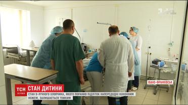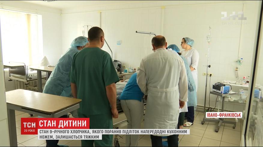 Произошло это в Ивано-Франковске, после чего ребенок упал с балкона 4-го этажа. 9-летний мальчик до сих пор в реанимации и, по словам медиков, пробудет там еще несколько дней. Затем его переведут в травматологию для дальнейшей операции. У мальчика - 3 ножевых ранения в спину, ушиб головного мозга, рваные раны затылка и сложный перелом плеча.