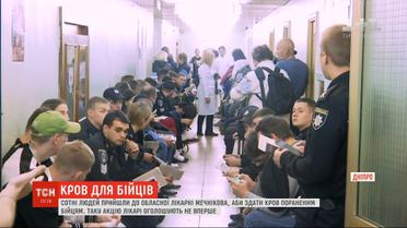 Сотни людей пришли сдать кровь для раненых бойцов в Днепре