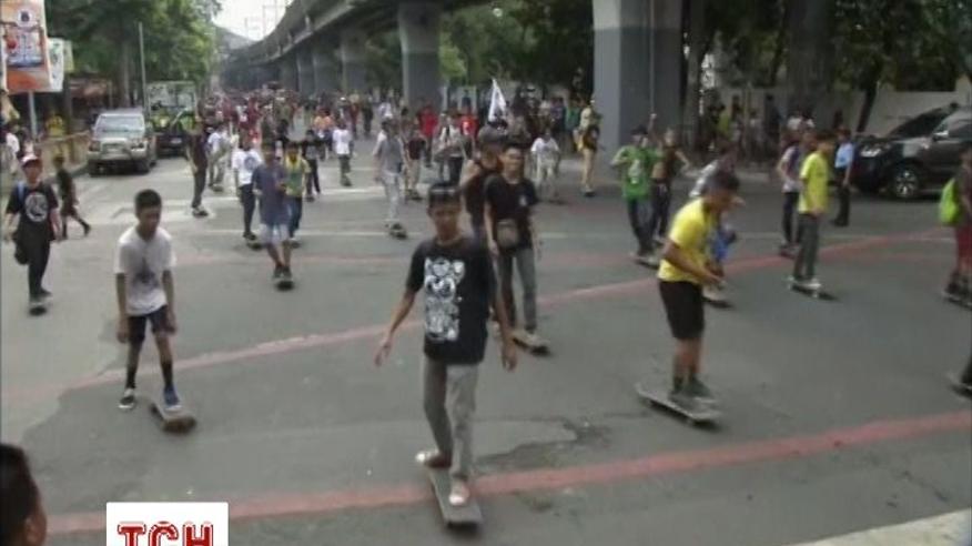 Сотни скейтбордистов проехались по главной улице филиппинского города Манила
