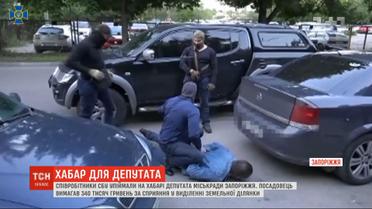 В Запорожье депутат горсовета требовал деньги за помощь в выделении земельного участка. Депутата вместе с сообщником задержали сотрудники СБУ во время передачи денег. 42-летний депутат Александр Тищенко - заместитель председателя постоянной комиссии по вопросам земельных ресурсов в горсовете. Чиновник в СИЗО, сегодня ему предстоит выбрать меру пресечения. Депутату грозит до 12 лет за решеткой.
