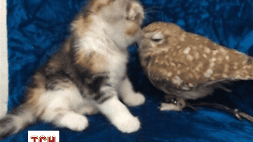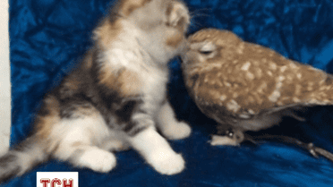 Сова и котенок стали лучшими друзьями