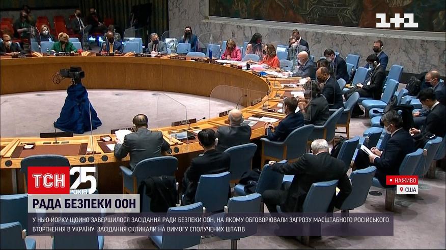 В Нью-Йорке, прямо в эти же минуты, Совбез ООН обсуждает угрозу масштабного российского вторжения в Украину. Заседание созвали на требование Соединенных Штатов. Никакой резолюции, вероятно, сегодня принято не будет, не в последнюю очередь потому, что Россия как постоянный член Совбеза имеет право вето. За ходом заседания внимательно следит ТСН.