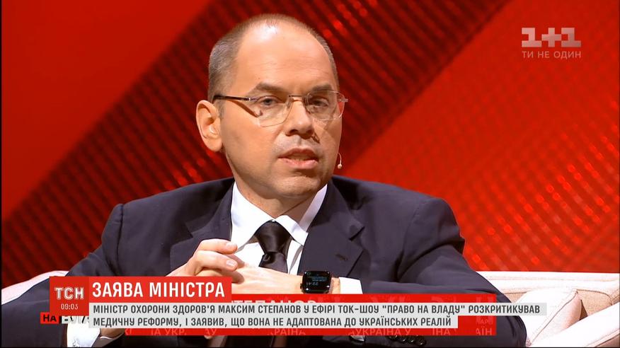 Министр здравоохранения Максим Степанов раскритиковал медицинскую реформу в Украине. В эфире ток-шоу "Право на владу" он ответил на возмущение бывшей главы Минздрава Украины Ульяны Супрун. В сети она написала: сейчас министерство, которое остановило медицинскую реформу, делает шаг в прошлое ради того, чтобы не менять медицину, а нравиться электорату.