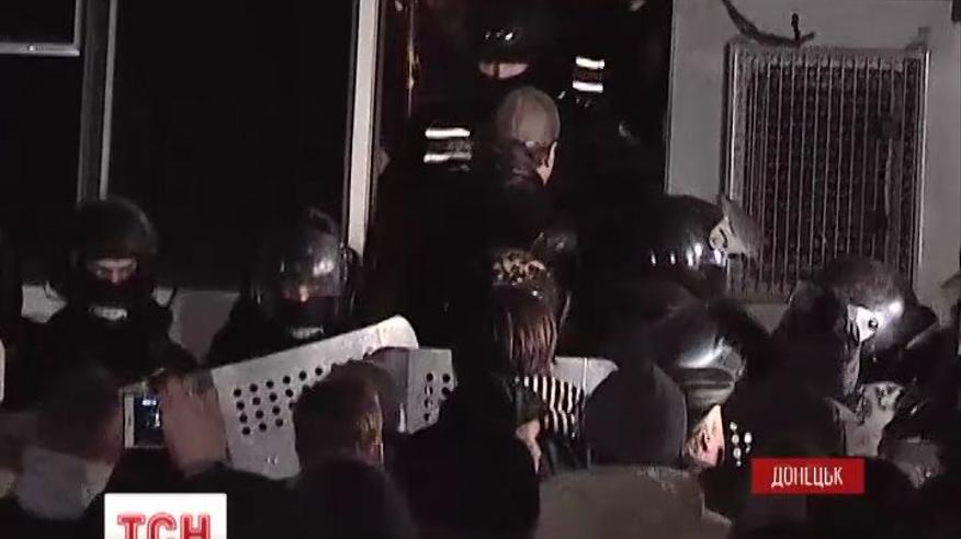 Спасти самопровозглашенного донецкого губернатора, задержанного сотрудниками СБУ, пытались его сторонники. Несколько сотен человек собрались под стенами управления.