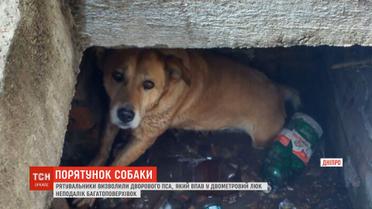 Спасатели освободили бездомного пса, который упал в двухметровый люк
