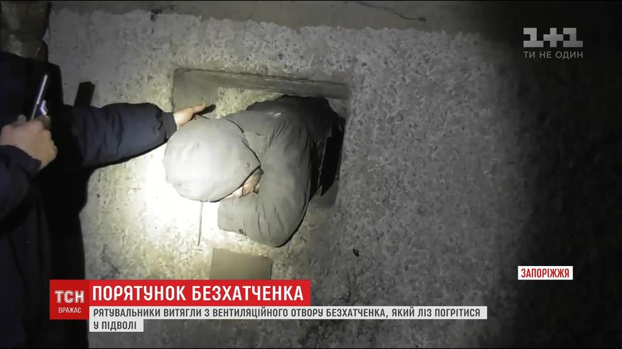 Мужчина хотел там переждать непогоду и полез в вентиляционное окно. Но это ему удалось лишь наполовину. Голова и плечи бездомного оказались в подвале, а вот тело крепко застряло в узком лазе. Жители дома вызвали патрульных, но те помочь бродяге не смогли. Опытнее оказались спасатели.