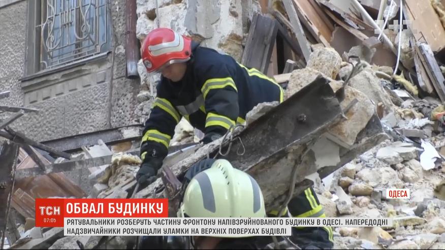 Спасатели разберут часть фронтона полуразрушенного дома в Одессе