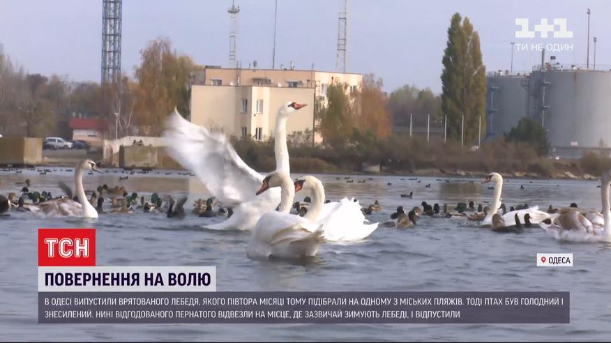 Спасенного от голода и истощения лебедя выпустили на свободу под Одессой