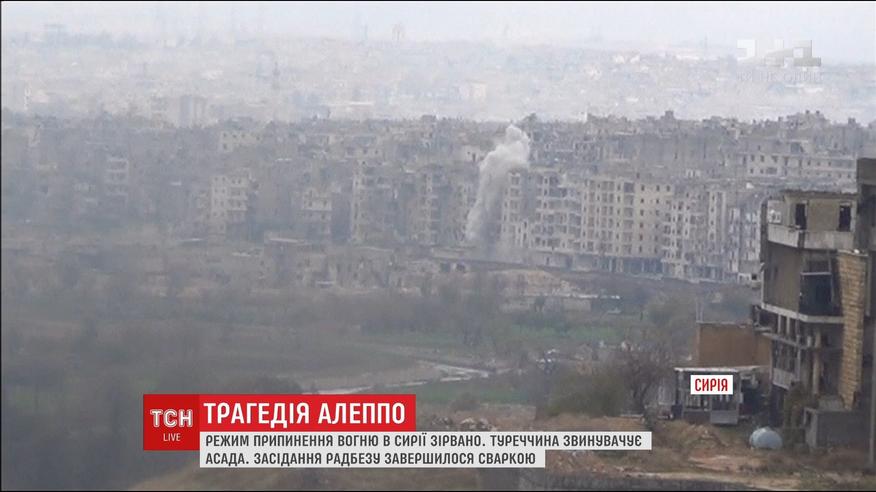 Прекращение огня в Алеппо, о котором договорились вечером накануне, продлилось - несколько часов, утром в городе снова слышны взрывы. В нарушении перемирия Турция обвиняет Асада и его союзников. Срочное заседание совета безопасности ООН превратилось в скандал.