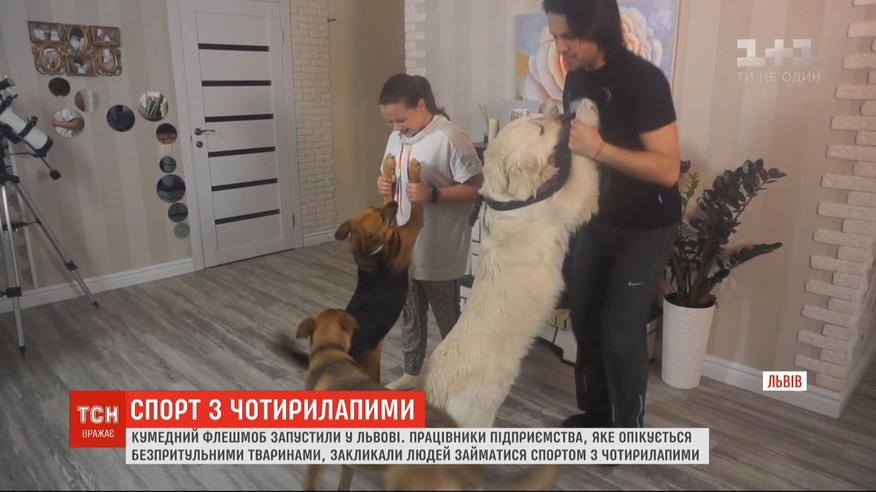 Во Львове коммунальное предприятие, которое занимается бездомными животными, запустило флешмоб. Работники с собачками на руках приседают и призывают других заниматься физкультурой с домашними любимцами. И не забывать, что настоящим другом может стать не только породистый пес. Благородно взять животное из приюта.