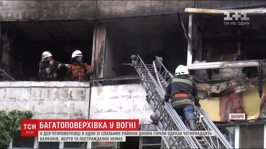 Сразу 14 балконов загорелись в днепровской многоэтажке