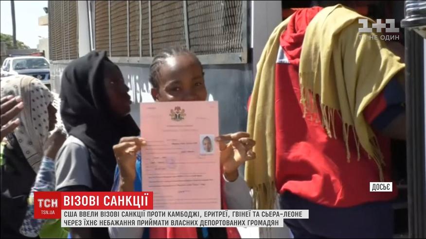 Отныне в Камбодже, Эритрее, Гвинее и Сьерра-Леоне американские консулы выдавать не будут ни туристических, ни бизнес виз. Такие ограничения будут касаться даже чиновников и семей дипломатов. Кроме того, гвинейцы еще и не смогут ехать в США на учебу.