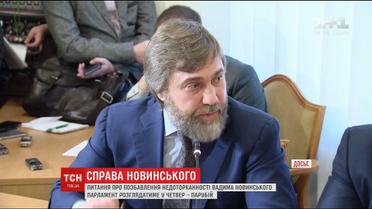 Регламентный комитет Рады не нашел достаточных оснований, чтобы рекомендовать депутатам голосовать за это решение - по-прежнему, большинство его членов считает, что Генпрокуратура не предоставила депутатам достаточно доказательств вины Новинского. Его обвиняют пособничество в лишении свободы личного помощника ныне покойного митрополита Владимира Александра Драбинко.
