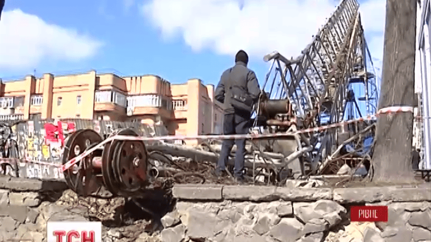 Строительный кран, более 30 метров высотой упал в центре Ровно
