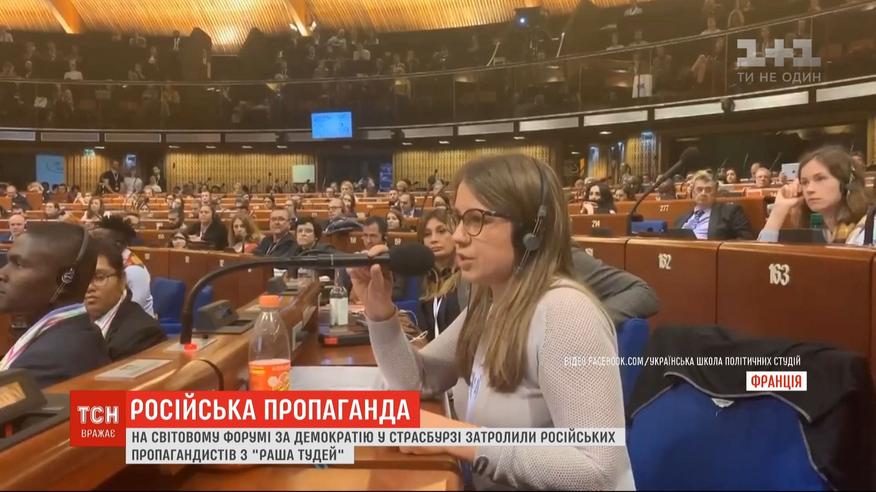 Там проходит мировой форум за демократию. Когда российские пропагандисты начали рассуждать о потере доверия к СМИ на примере Соединенных Штатов и Великобритании, представители Франции спросили их - почему же не упоминают Россию? В то же время украинская делегация и другие участники форума встали с плакатами "Пропаганда - это не журналистика".