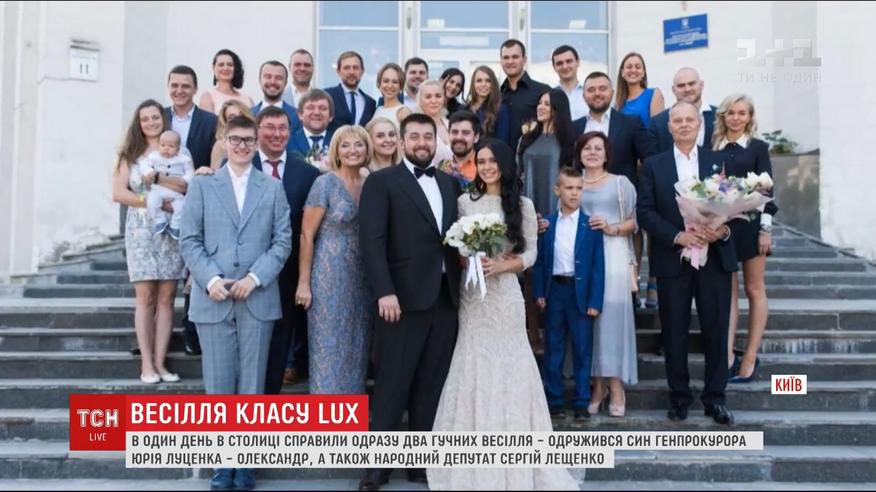Нардеп Сергей Лещенко в субботу женился диджейкой Настей Топольское. Праздновали свадьбу в оранжерее "Сад желаний" на территории ВДНХ, которую специально для вечеринки закрыли на спецобслуживание. В тот же день в центральном ЗАГСе столицы женился и старший 28-летний сын Гепрокурора Украины Юрия Луценко - Александр. Действо происходило во время обеденного перерыва. Поэтому посторонних в здании не было.
