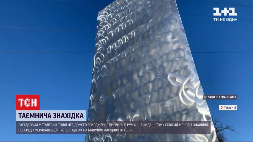 Еще один монолит, очень похож на американский, нашли в Румынии. Его обнаружили жители города Пятра Нямц, что в трех часах от украинской границы. Треугольный металлический столб высотой почти 4 метра стоит на холме неподалеку древней крепости. А на его поверхности выцарапанный узор. Кто и когда установил конструкцию - неизвестно.