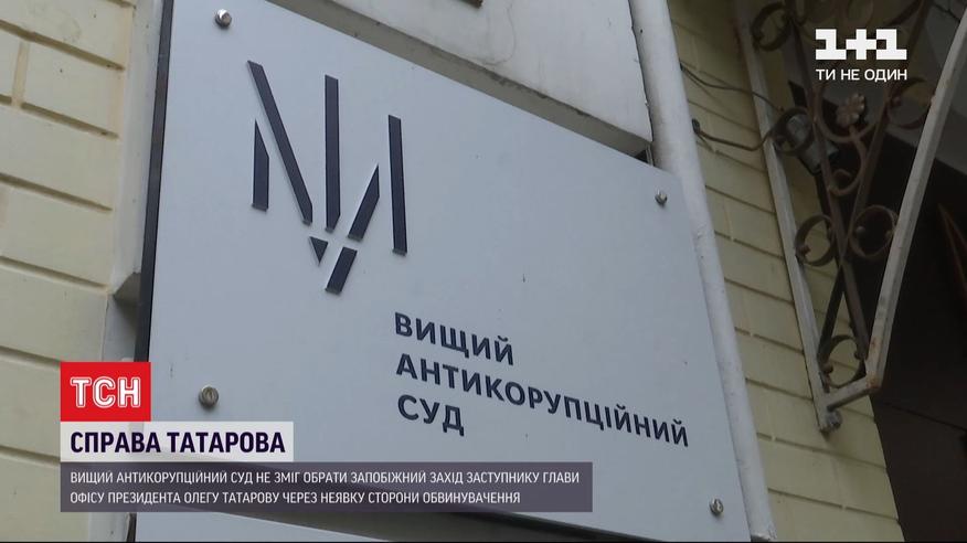 Мера пресечения для Татарова. Замглаве Офиса Президента опять не смогли его выбрать. На заседание Высшего антикоррупционного суд не явились прокуроры. Поэтому судья вынужден был перенести слушания. Олег Татаров зашел в суд через служебный вход. Во дворе учреждения его противники устроили митинг. Татарова подозревают в предоставлении взятки чиновнику МВД при расследовании махинаций с квартирами для Нацгвардии.