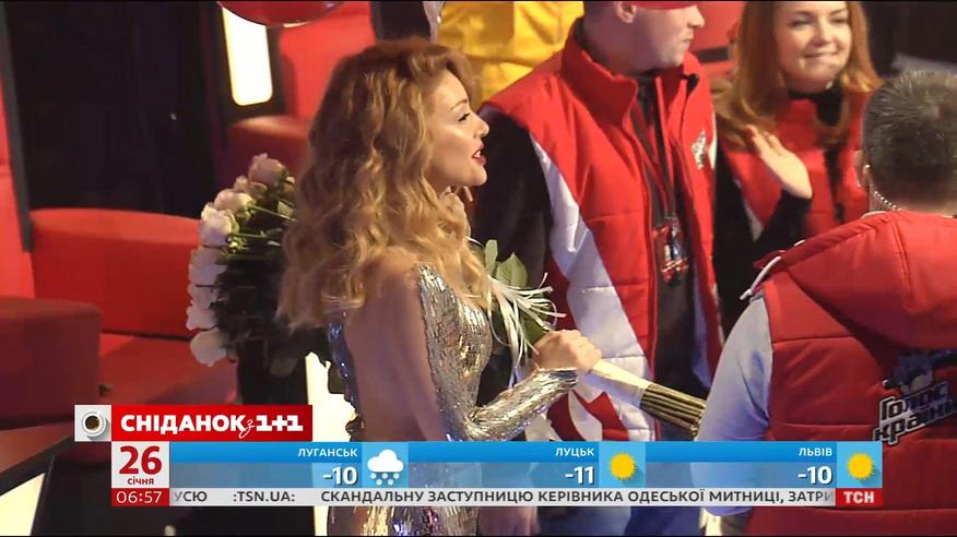 Звездная красавица певица Тина Кароль встречала свой день рождения на работе - на съемках "Голоса", и не ожидала никаких сюрпризов. И зря. Ведь вся команда проекта, вместе с тренерами, ведущими и организаторами, поздравили Тину прямо во время съемок.