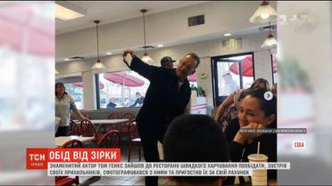 Знаменитый актер Том Хэнкс пришел в ресторан и угостил всех посетителей. 62-летний актер с женой посетил заведение в Калифорнии, чтобы пообедать. Впрочем, фанаты узнали Тома Хэнкса и попросили сфотографироваться с ним.