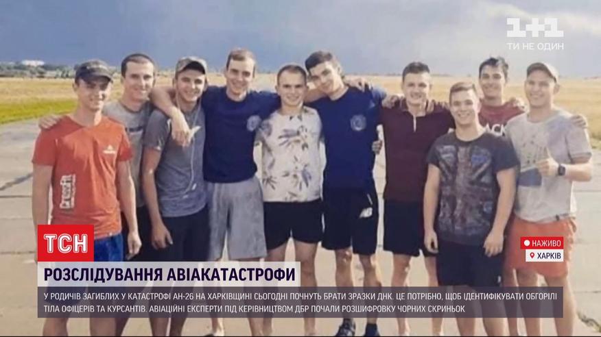 У родственников погибших в катастрофе Ан-26 под Чугуевом Харьковской области сегодня начнут брать образцы ДНК. Это нужно, чтобы идентифицировать обгоревшие тела офицеров и курсантов. Экспертиза продлится около трех недель. В Харьков уже прибыли 17 семей курсантов. Часть из них размещены в гостинице министерства обороны, другие расселились у родственников. Авиационные эксперты под руководством ГБР начали расшифровку черных ящиков. Какая есть новая информация и начался ли уже процесс отбора образцов ДНК - в прямом включении.