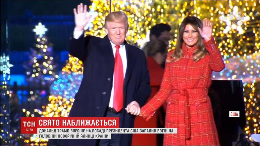 На ее торжественное открытие хозяин Белого дома пришел вместе с женой, Меланиею Трамп, для этого события она выбрала наряд праздничного красного цвета. Президент США сам отсчитал секунды до старта иллюминации, а нажать на главную кнопку доверил первой леди.