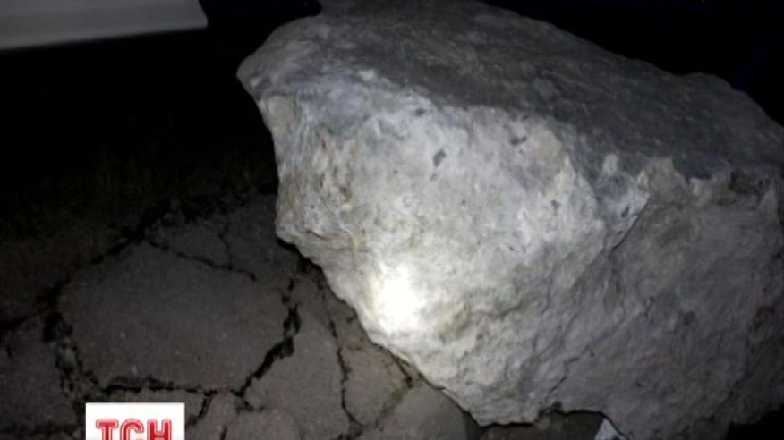 Несколько глыб, пробив каменную стену, упали на проезжую часть. Самая большая, которая весит более 3 тонн, покатилась по дороге. Наконец, одна полоса трассы была заблокирована камнями и ветками.
