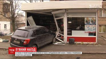 Автомобиль влетел в магазинчик продовольственных товаров в Голосеевском районе. В это время в киоске покупала продукты женщина с трехлетней дочкой. От удара ребенка зажало между холодильником и бампером машины. Девочку с травмой позвоночника и глубокими порезами лица забрала "скорая". Водитель машины был очень пьян.