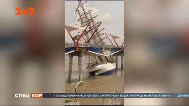 Трехмачтовый парусник ВМС Бразилии протаранил пешеходный мост в Эквадоре