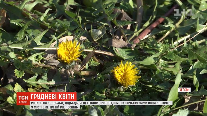 Им не помешали даже ночные заморозки. Вся неделя для цветов еще будет благоприятной, говорят местные синоптики. А вообще появилась традиция: одуванчики в начале зимы в Херсоне цветут уже третий год подряд. А в октябре там уже отцвели каштаны, сирень и акация.