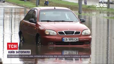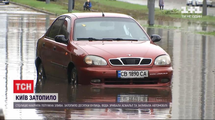 Дождь стеной и потоплены автомобили. Киев накрыл мощный ливень. С утра в столице объявили штормовое предупреждение. На улицах образовались реки, смывали дорожные знаки и срывали асфальт. Более о последствиях непогоды расскажет ТСН.