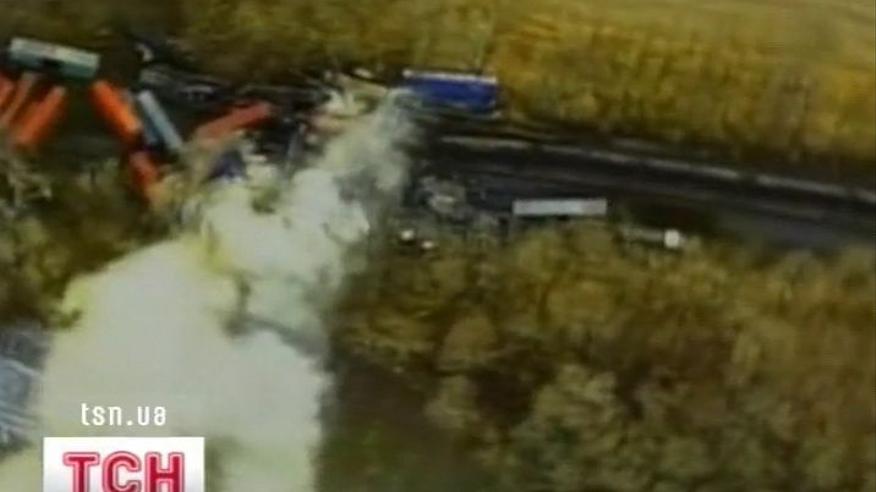 В штате Индиана столкнулись сразу 3 грузовых поезда. Два поезда сошлись на одном пути и уже вместе протаранили 3-й - на встречной. Несколько вагонов с химическими веществами загорелись.