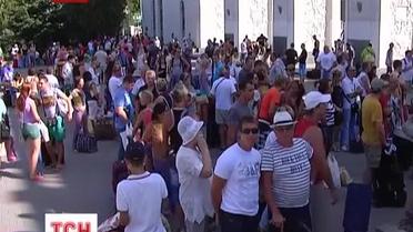 Поезда прибывают и отправляются с четырехчасовым опозданием. На перроне Симферопольского железнодорожного вокзала, в ожидании поездов, собралось несколько тысяч пассажиров. Причиной стала ночная авария на железной дороге в Запорожской области.