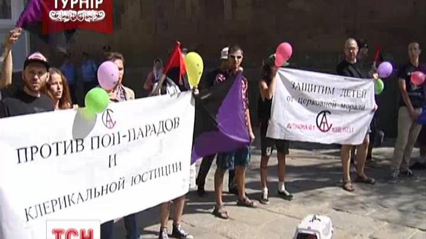У Киево-Печерской Лавры прошел протест в поддержку россиянок с Пусси-Райот