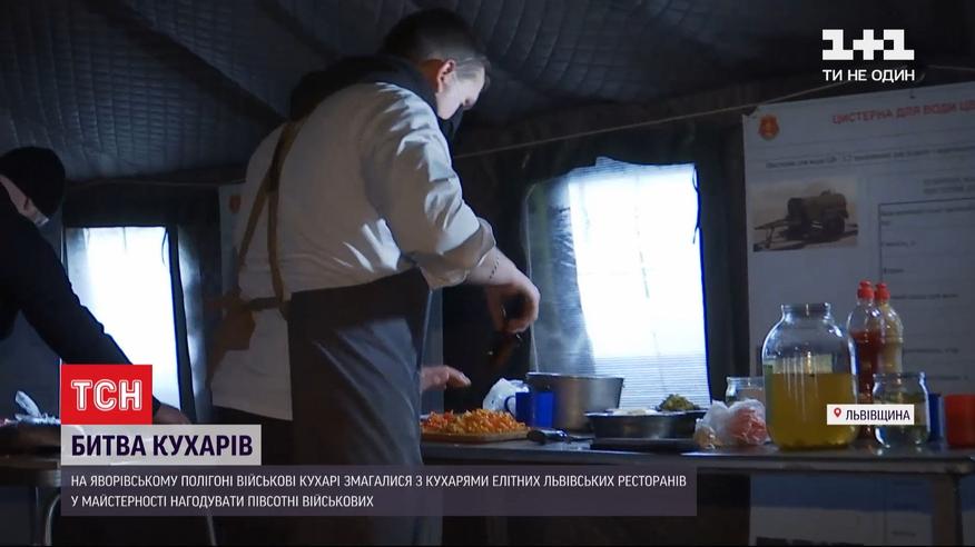 Во Львовской области на Яворивском полигоне военные повара соревновались с поварами элитных львовских ресторанов. Кто приготовит вкусный обед для солдат. Время ограничено, условия полевые, а задача совсем не простая - каждой команде накормить полсотни военных. Что готовили и чья пища больше нравилась - дегустировала ТСН.