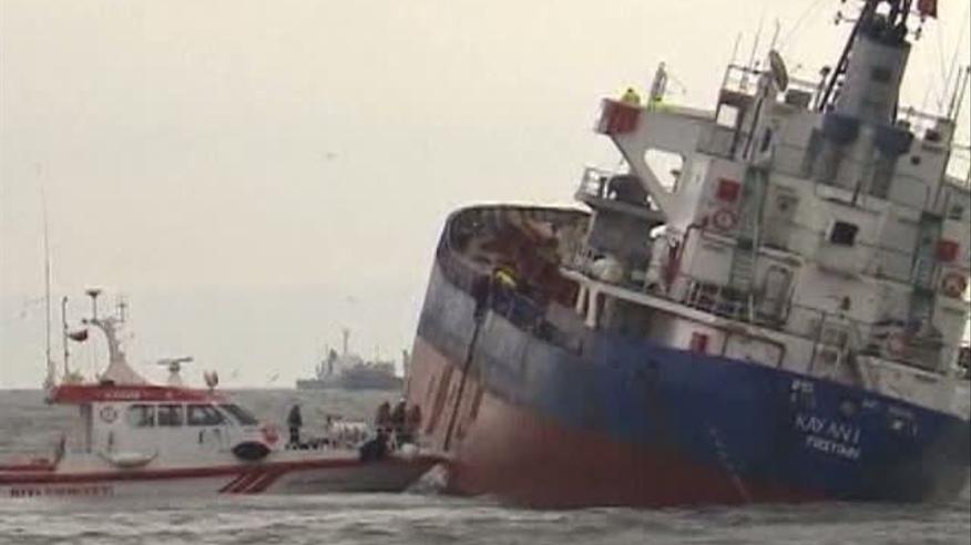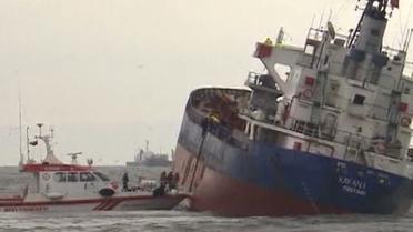 Из-за шторма в Мраморном море 86-метровый сухогруз столкнулся с двумя небольшими судами и получил пробоину.