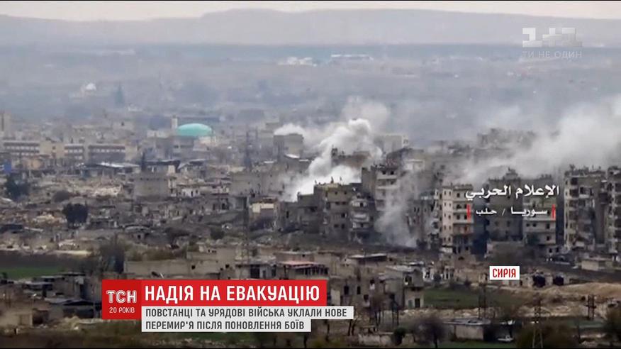 Сирийские проправительственные силы и повстанцы заключили новое перемирие. Предыдущее не продержалось и суток. В Дамаске требовали, чтобы повстанцы и гражданские с Алеппо были эвакуированы одновременно с окружающими поселками, которые до сих пор окружены силами оппозиции. В конце концов бои возобновились, о прекращении огня удалось договориться только вечером. И эвакуация может начаться в ближайшие часы.