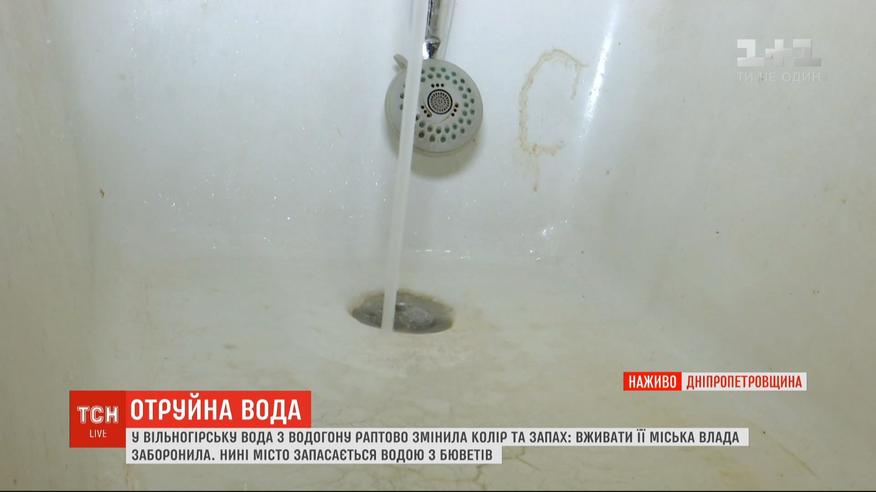 Уже пятый день без питьевой воды остается город Вольногорск в Днепропетровской области. Жидкость в кранах вдруг начала вонять и изменила цвет. Мэрия ее не выключила, но сразу предупредила: употреблять эту воду нельзя, только использовать как техническую. Водопровод уже обследовала специальная комиссия, о выводах - в сюжете.