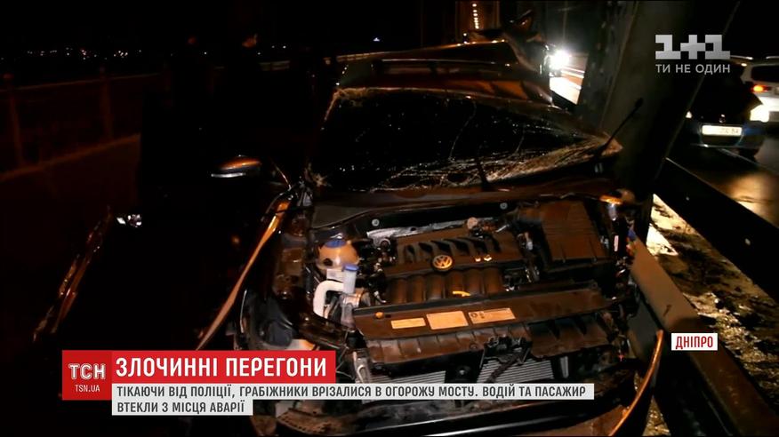 Убегая от патрульных в Днепре, грабители врезались в заграждение на мосту