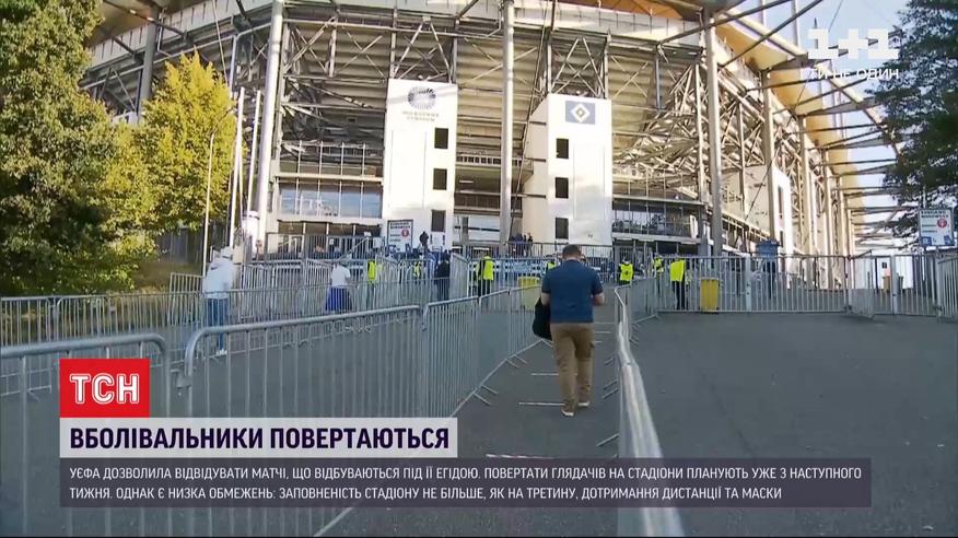 Футбольные болельщики возвращаются на трибуны. УЕФА разрешил посещать матчи, которые проходят под его эгидой. Зрителей на стадионы планируют возвращать уже со следующей недели. Правда, есть ряд ограничений - заполнять позволят не более трети мест. Обязательным является также соблюдение дистанции и маски, если этого требуют правила страны, где проходит матч. Относительно фанатов выездной команды, то пускать их или нет, будет решать страна-хозяин поединка.